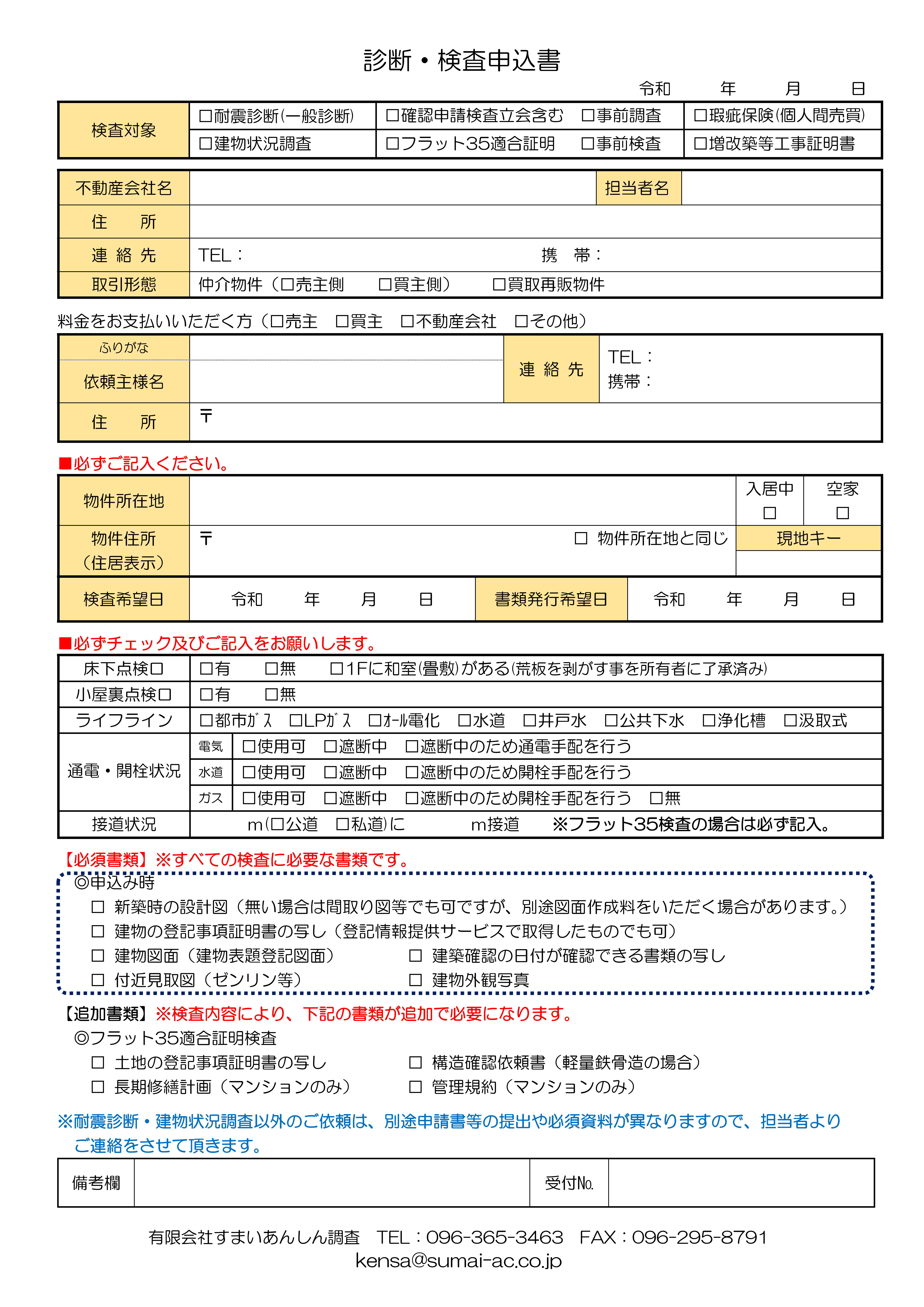 建物状況調査申込の提出書類